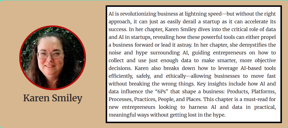 Karen is contributing the chapter on Data and AI for Startups to the upcoming Entrepreneur’s Manifesto book by Action Takers Publishing. Expected to be published in early 2026.