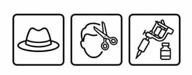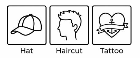 Prompt: “create a composite image with 3 adjacent tiles in a horizontal row. the three tiles should show a hat, a haircut, and a tattoo. all images should be non-gendered and simple.”